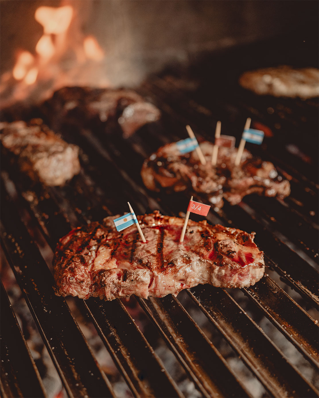 Cortes nacionales e importados asados a leña con la esencia argentina.